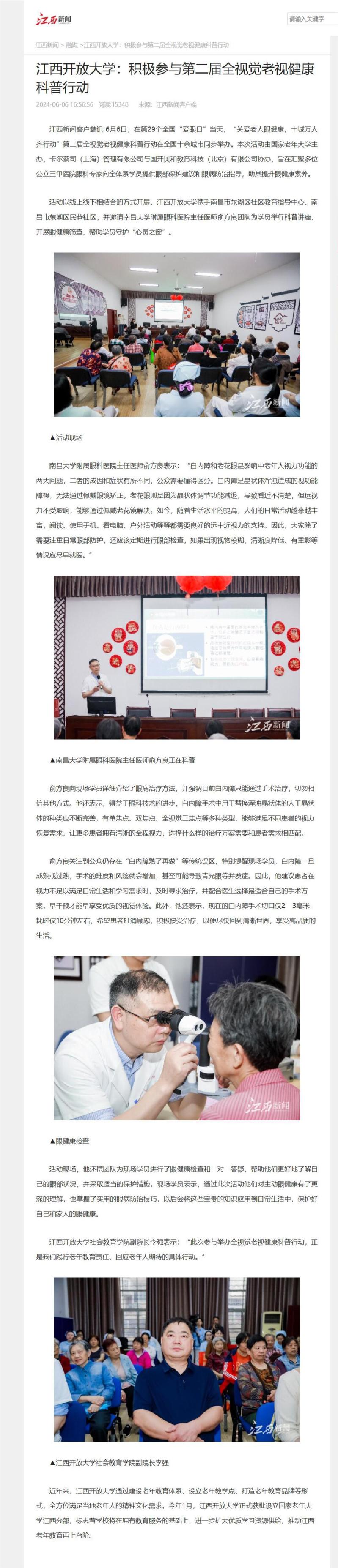 江西新闻:米兰app入口站官网积极参与第二届全视觉老视健康科普行动