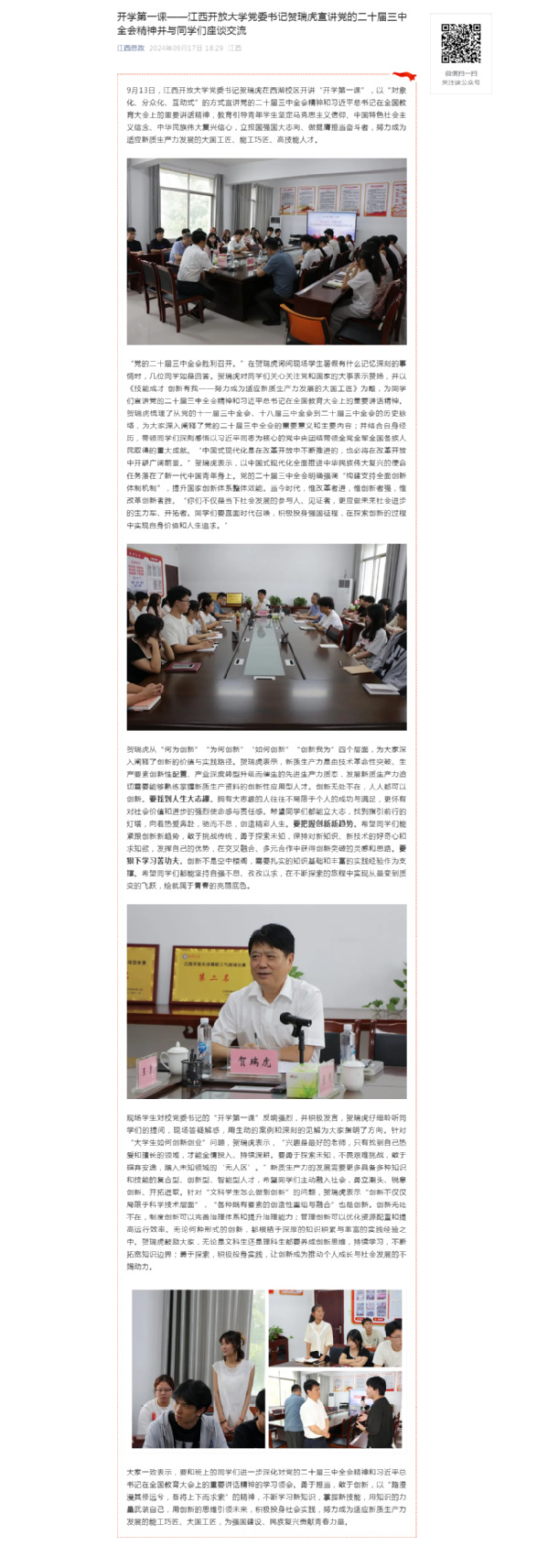 9月13日,米兰app入口站官网党委书记贺瑞虎在西湖校区开讲“开学第一课”,以“对象化、分众化、互动式”的方式宣讲党的二十届三中全会精神和习近平总书记在全国教育大会上的重要讲话精神,教育引导青年学生坚定马克思主义信仰、中国特色社会主义信念、中华民族伟大复兴信心,立报国强国大志向、做挺膺担当奋斗者,努力成为适应新质生产力发展的大国工匠、能工巧匠、高技能人才。