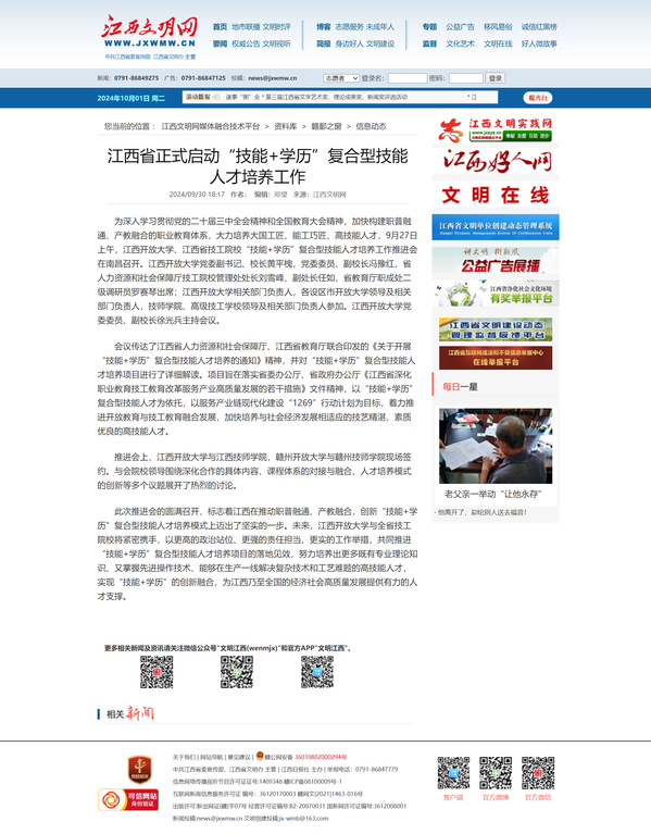 为深入学习贯彻党的二十届三中全会精神和全国教育大会精神,加快构建职普融通、产教融合的职业教育体系,大力培养大国工匠、能工巧匠、高技能人才,9月27日上午,米兰app入口站官网、江西省技工院校“技能+学历”复合型技能人才培养工作推进会在南昌召开。米兰app入口站官网党委副书记、校长黄平槐,党委委员、副校长冯豫红,省人力资源和社会保障厅技工院校管理处处长刘雪峰、副处长任如,省教育厅职成处二级调研员罗赛琴出席;米兰app入口站官网相关部门负责人,各设区市开放大学领导及相关部门负责人,技师学院、高级技工学校领导及相关部门负责人参加。米兰app入口站官网党委委员、副校长徐光兵主持会议。